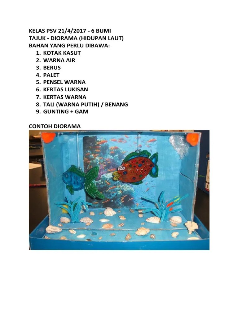 Jun 01, 2022 · kajian rekaan seni visual from 1.bp psv tahun 6 diorama dasar laut . Diorama alam sekitar psv tahun 6 · murid menceritakan pengalaman sendiri dalam proses penghasilan poster.
